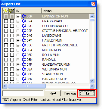 There are two filters that can be used together to display a selected subset of airports and terminal charts in the Airport List.
